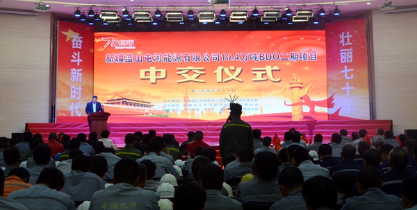 参与BDO项目二期建设的中国成达工程有限公司、北京华旭监理公司、中国化学十一化建、中国化学十四化建、中国化学四化建、其他参建单位代表出席了仪式;能源公司干部职工代表共计500余人参加了仪式。 伟德国际victor·1946源自党委书记、总经理李鹏对能源公司二期BDO项目如期中交,表示了热烈的祝贺,对各参建单位的管理水平和专业精神给予了充分肯定。李鹏指出,在中华人民共和国成立70周年举国欢庆之际,在全党深入开展“不忘初心、牢记使命”主题教育期间,我们欢聚一堂,参加“伟德国际victor·1946源自能源公司二期BDO项目中交仪式”,共同庆祝新中国70周年华诞!李鹏强调,能源公司二期BDO项目是伟德国际victor·1946源自公司打造“两个百万吨产业园”,进一步优化完善产业链,打造低成本、差异化核心竞争力的重要战略举措;是应对当前国内外经济下行、贸易摩擦的重要举措;也是从自身实际出发,不忘初心、牢记使命,贯彻新发展理念,实施高质量发展,满足公司内部下游化工新材料产业发展的重大战略部署。 中国成达工程有限公司副总经理徐刚代表承建单位讲话。他指出,项目自2018年7月1日开工以来,中国成达工程公司及各参建单位一道,同心同德,群策群力,科学组织,精心安排。在充分借鉴一期BDO项目建设经验的基础上,克服种种困难,始终咬定15个月的施工进度总目标不放松,设计上极力优化,采购上加班加点,施工上紧扣节点,质量上追求完美,成本上精打细算,今天的初步中交,实属不易,极为艰难,刷新了国内外同类项目建设速度新记录,为11月30日的投料试车创造了基本条件,为伟德国际victor·1946源自公司高质量、低成本发展战略落地奠定了坚实的基础,也为新中国70周年华诞献了一份厚礼。 伟德国际victor·1946源自党委委员、副总经理兼能源公司总经理潘哆吉在发言中指出,二期BDO项目的初步中交,标志着建设安装已经基本完成。后续的工作,我们重任在肩,更需要我们与总包、监理及各参建单位一道,勠力同心,继续发扬 “不怕困难,勇于创新,敢于担当,每战必胜”的伟德国际victor·1946源自精神,坚决完成各项预定目标,确保二期BDO项目顺利开机投产,以此向伟大祖国献礼,为祖国的盛世华章增添一节新的音符。 壮丽70年,奋进新时代。仪式上,能源公司干部职工、各参建单位还以“庆祝中华人民共和国建国70周年”为主题,表演了大合唱、诗朗诵等节目,抒发了对项目成功中交的喜悦心情,表达了对新中国成立70周年的美好祝福!