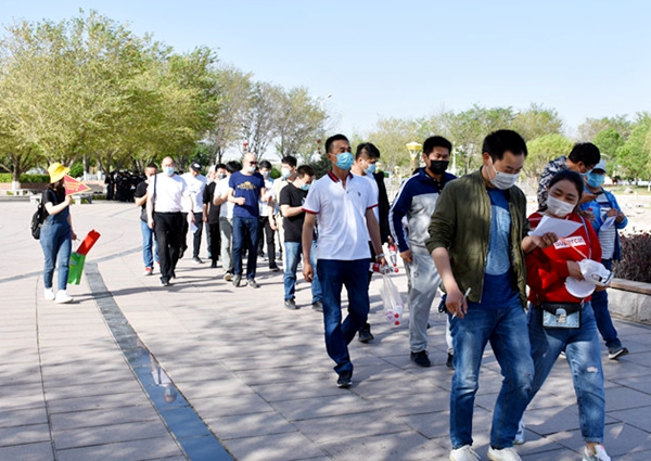 早上十点,活动在一声“出发”后拉开了序幕,第一个项目是沿河徒步,师徒一组沿滨湖河进行约6公里徒步前往本次活动的目的地新胡杨生态园。平时大家都处在充实而忙碌的工作状态下,师徒之间更多也是关于工作内容的讨论。借着这次活动,大家暂时放下工作,师徒之间闲话几句家常,相互加深了解的同时增进师徒感情。