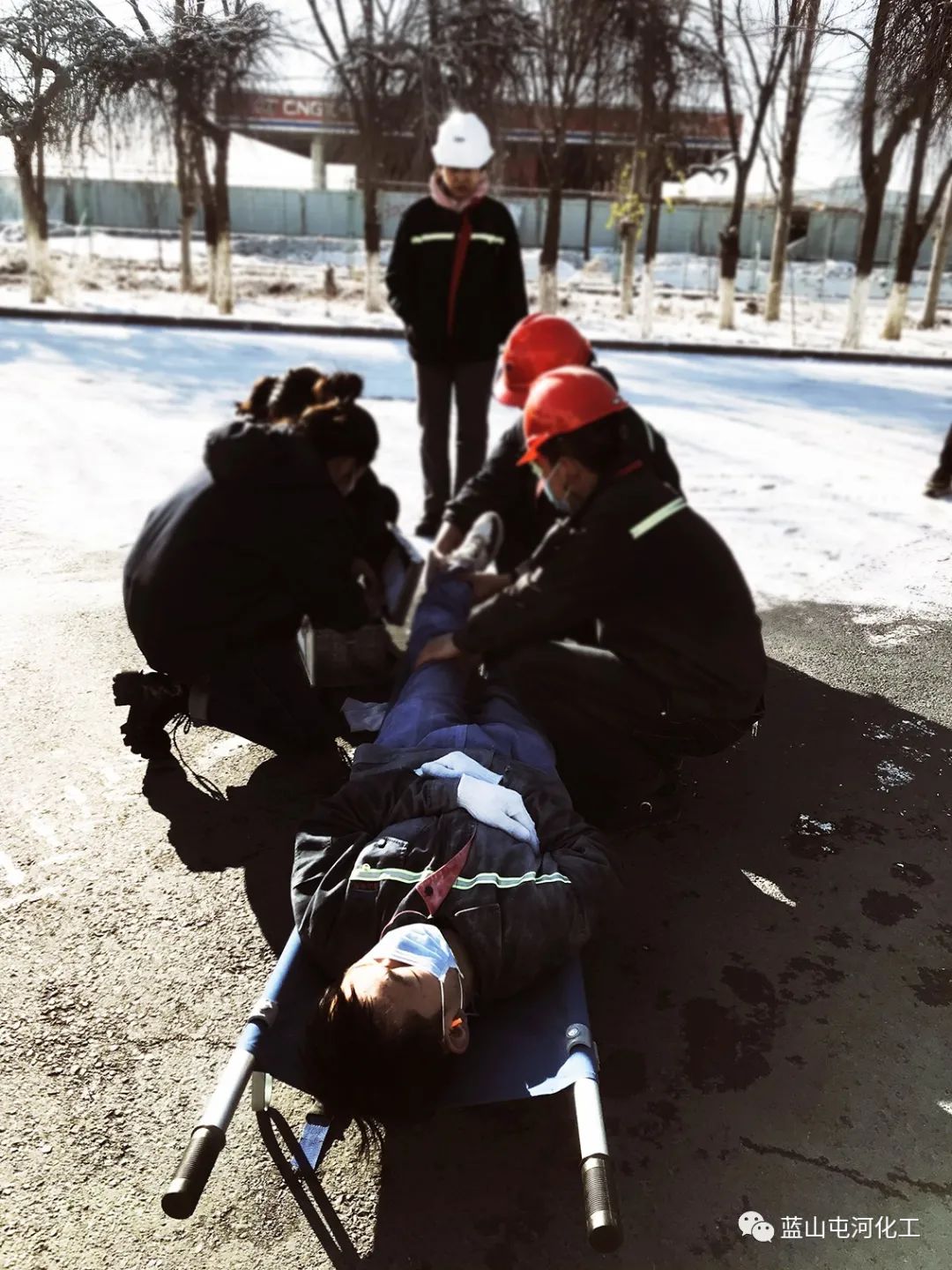 应急救援组穿戴好防护用品,检查灭火器完整情况后,对现场火灾警戒观察灭火,利用混料车间消防栓对起火区域喷淋,并对有可能受火灾事件影响扩大的区域持续喷淋覆盖及降温;警戒医疗组设置警戒线,进行通行管制,组织人员疏散到指定区域,对受伤人员实施急救;后勤保障组联系车辆送受伤人员前往医院;各属地负责人清点班组人员,确认伤害状态......随着演练的进行,一条条应急预案紧张有序的落实到位,现场指挥得当,大家协同配合,圆满完成各项演练流程,达到预期效果。