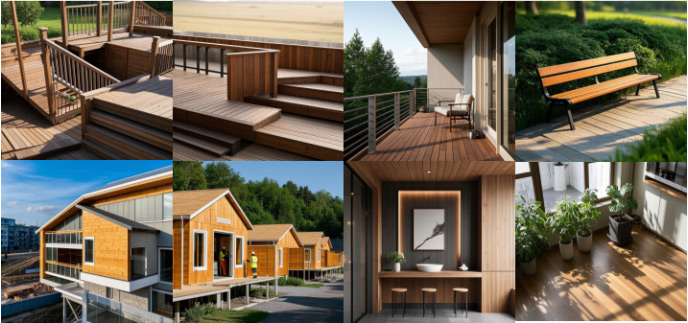生态PVC发泡木质复合材料凭借行业领先的材料配方和精密制造工艺,展现出卓越的性能优势。在SGS 1000小时和6000小时户外加速老化测试的极端环境下,其性能依然稳定保持在4级以上水平,色彩持久如新,丝毫不褪色。其阻燃性能达到了建筑材料(难燃)的最高标准B1级,同时具备82HDB的高表面硬度和≤0.1%的超低尺寸变化率。即便在-40℃至70℃极端温差下,尺寸变化率依然能严格控制在0.1%以内,确保产品安全不变形。这些特性不仅确保了产品在复杂环境下的可靠性和耐用性,还有效延长了使用寿命。与传统铺装材料相比,该材料在耐磨性、强度和防霉变性能上全面超越,展现出更高的承载能力和耐磨度,实现了高性能与高耐久性的有机统一。