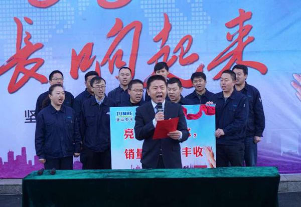 型材节水事业部总经理蒋文君激励精英们,从今天开始,我们将共同见证各团队在遇到困难时的顽强拼搏、遇到问题时的创新变革,用奋斗改变命运,公司将对奋斗者和贡献者以奖励和荣誉。 军令状是承诺,是必胜的信心,更是对自我的激励与挑战!公司领导与各团队在会上签下军令状,团队代表表态发言,宣誓表决心,他们整装待发、鉴定信心,响亮的口号一浪胜似一浪高,彰显出伟德国际victor·1946源自人的决心、斗志和目标:愿意付出不亚于任何人的努力,为全面完成目标前进!前进!前进!2018,必胜! 组织开展“2018,巴掌响起来”启动活动是为了更好的带领公司型材节水的生产、销售精英们用超强的执行力、使命感去迎接挑战,进一步提升创新能力和核心竞争力,为消费者提供更好的服务和产品。 满载着型材、管材产品的卡车缓缓驶出厂区,全体以《相信自己》的激情演唱及震耳欲聋的鞭炮声鼓舞了士气,拥有了勇往直前的动力!型材节水事业部将继续团结奋进,迈出屯河人铿锵的步伐。以利他之心服务每一个客户,用优质的产品赢得市场,2018年,我们的巴掌一定会响彻全年!