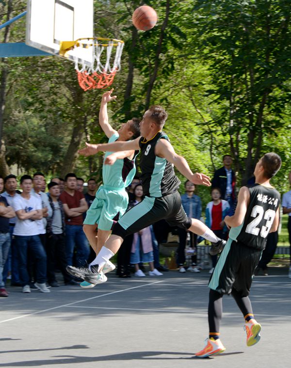 随着场上裁判员哨声一响,男子篮球赛六个代表队,通过队队见面PK赛,双方球员你争我夺,一个手势就代表一种战术的形成,反攻、急速运球、传球,快步转身上篮,一气呵成,精彩的进球赢得场边观众阵阵叫好声。
